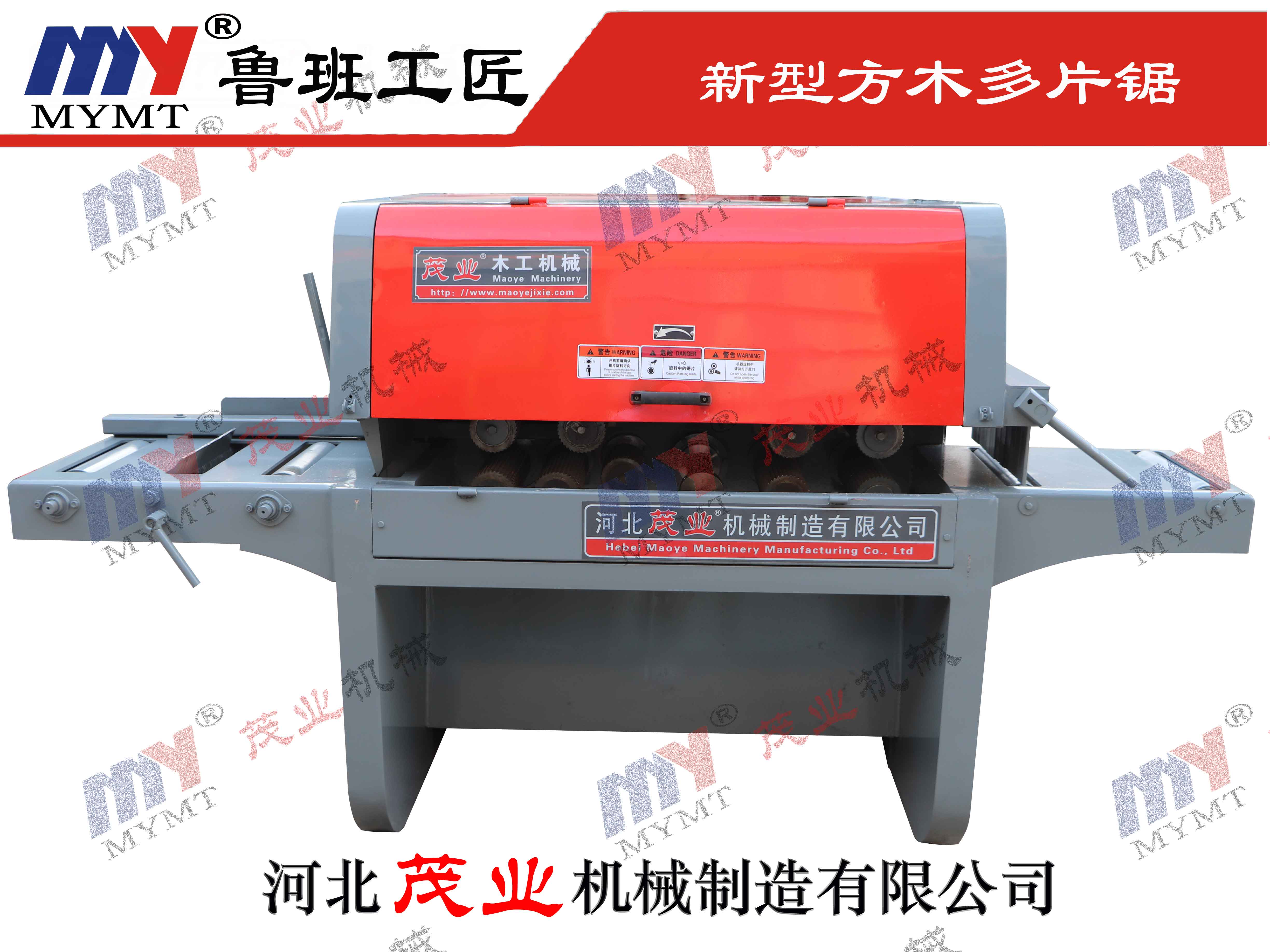 該款方木多片鋸是河北茂業機械制造有限公司針對長度小于200cm方木生產加工設計的一款機型,適合加工寬度5-30cm,高度6-15cm的方木。主軸鋸片有效寬度最大30cm,該款多片鋸具有生產效率高,操作維護簡單,出材光潔度高無須壓刨等特點。